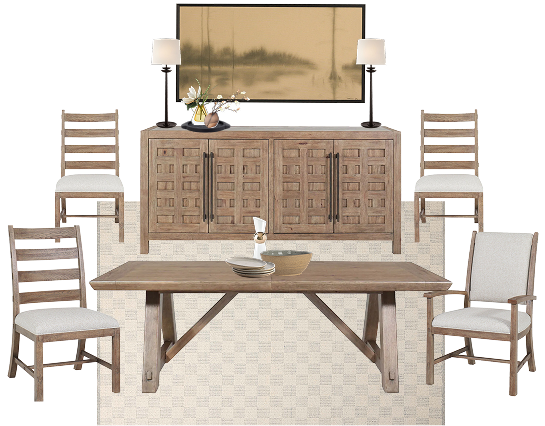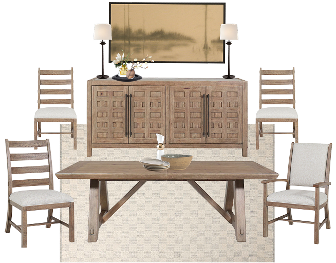 A balanced blend of light and dark finishes, natural textures, rustic metal accents, and functional details — designed for comfortable, casual living.