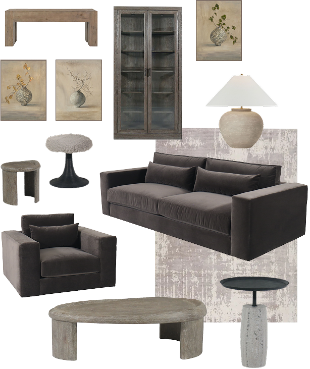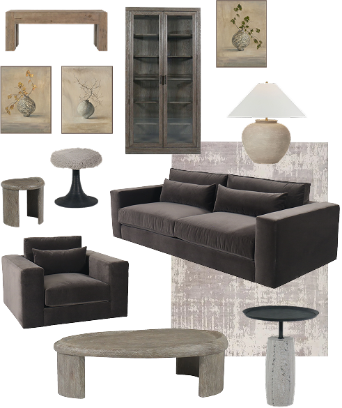 Plush seating, sculptural tables, and hand-selected accents create a space that feels both grounded and refined.